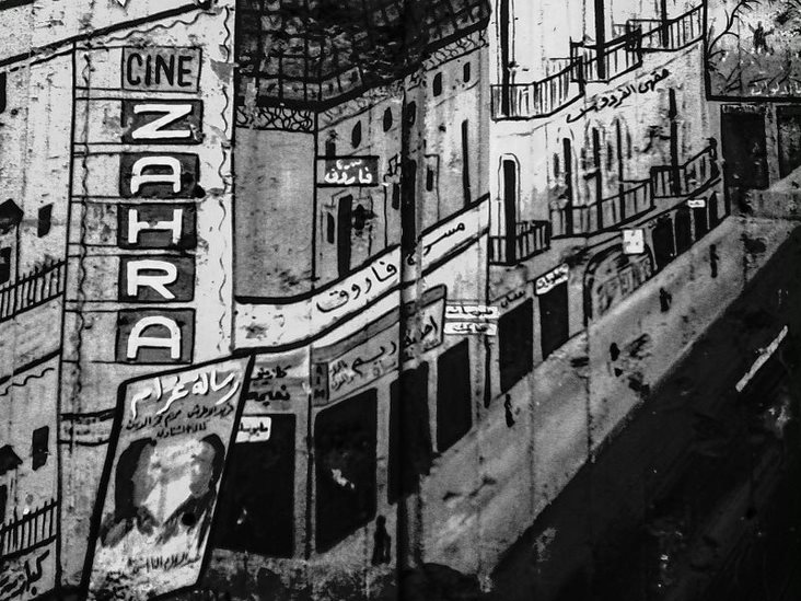 De l’arabe, des écritures latines, des mains négatives sur une paroi comme dans une grotte du néolithique.