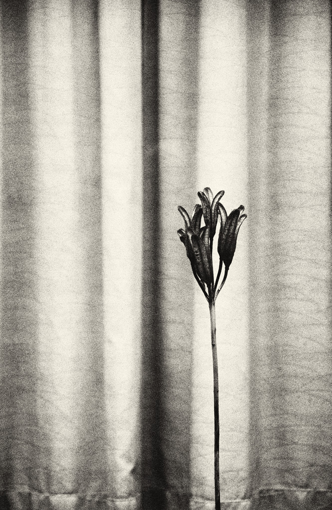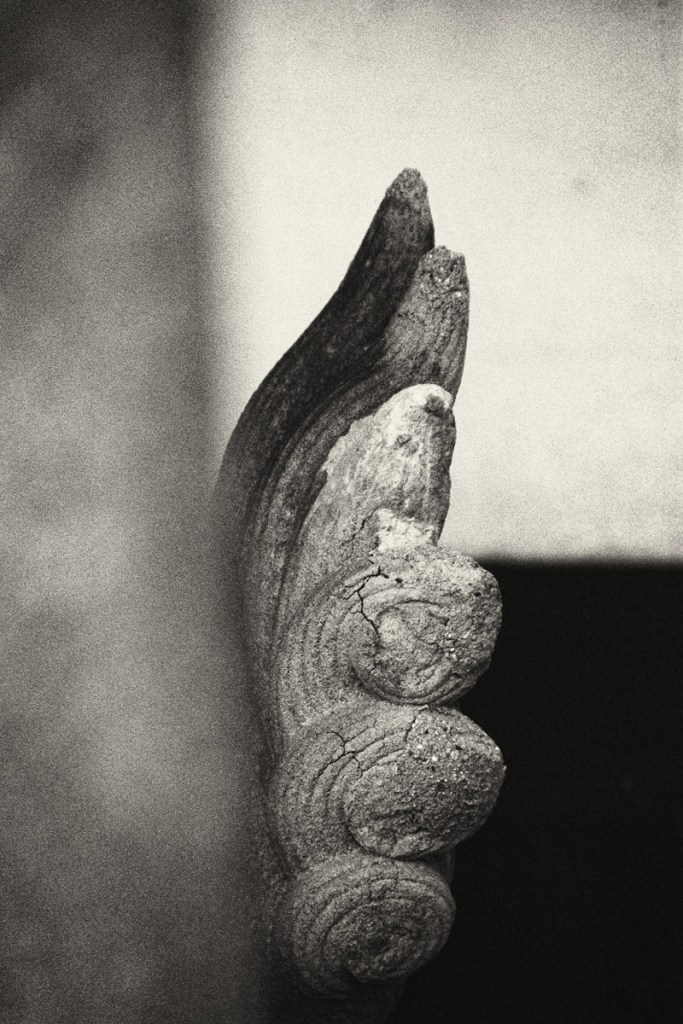 De format vertical, monuke – traditionnellement, le japonais s’écrit verticalement en colonne allant du haut vers le bas et en s’ordonnant de droite à gauche -, propose un ensemble de kanjis photographiques de grande beauté désignant la force de l’atemporalité en transmettant la sensation de l’éphémère et du fragile.