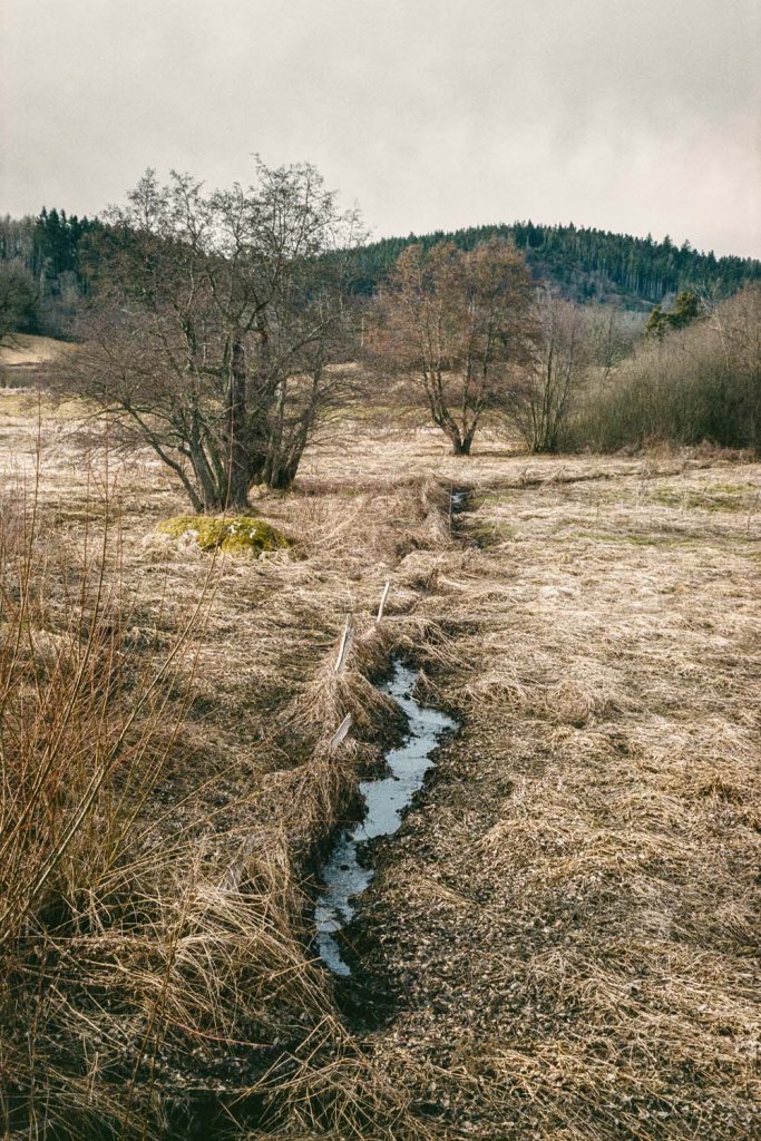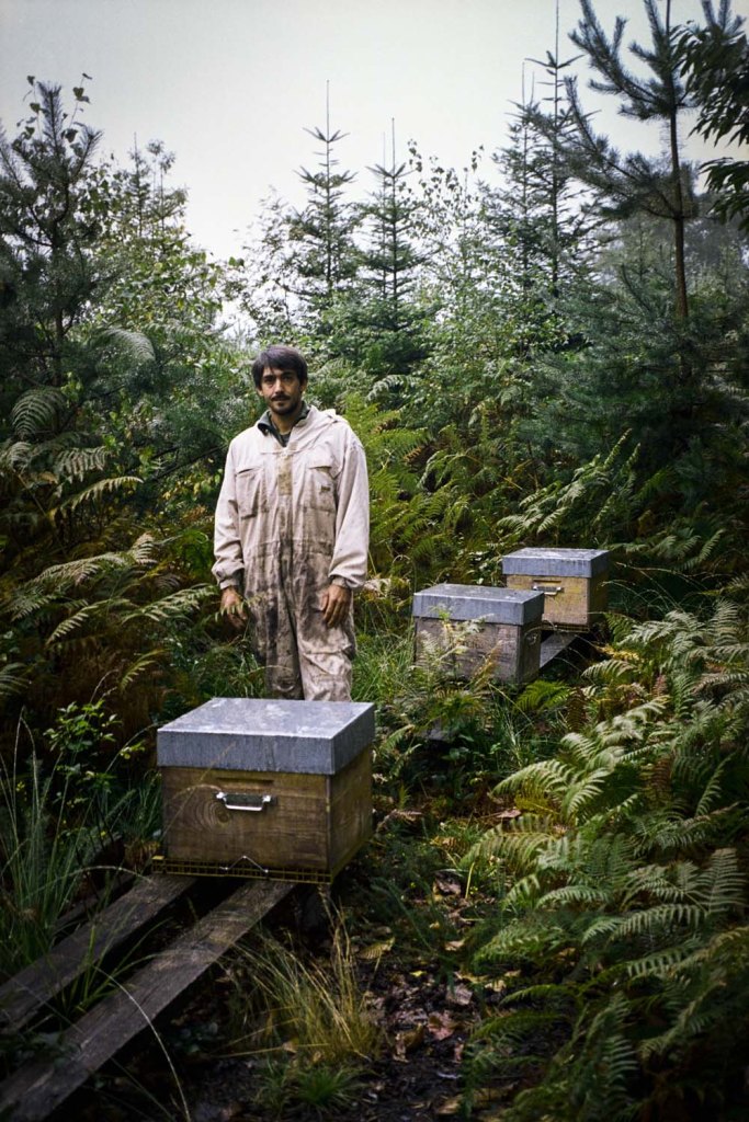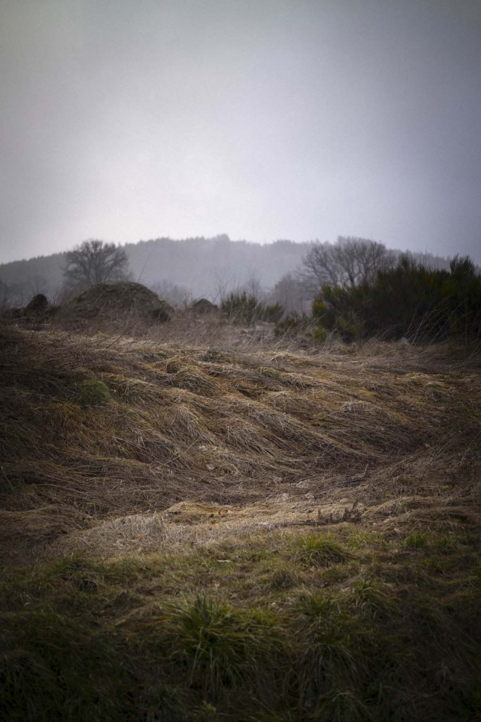 Christophe Goussard observe la ruralité, le travail de la terre par les paysans (des exploitants agricoles ?), les bêtes et les hommes, les bois et les carrières de pierre, les volcans et les rus serpentant dans la tourbe.