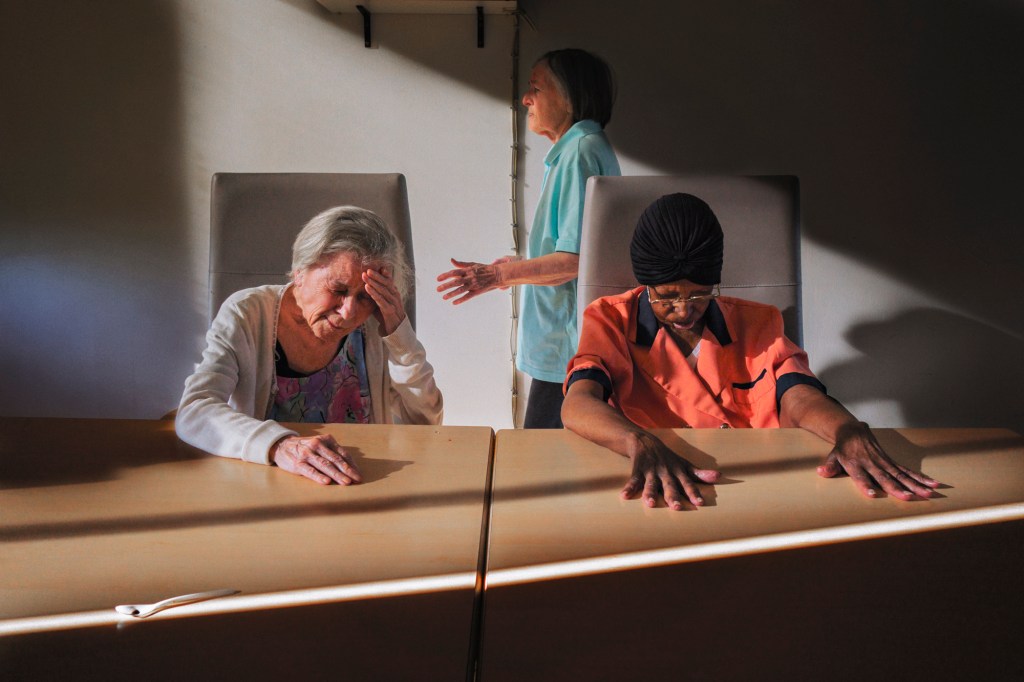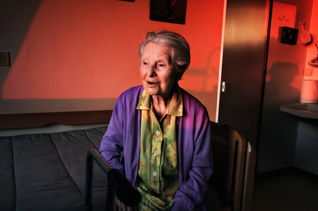 C’est par la couleur presque sévillane de ses photographies que Lionel Jusseret redonne aux pensionnaires qu’il côtoie l’éclat d’une intimité à nue lui ayant été offerte.