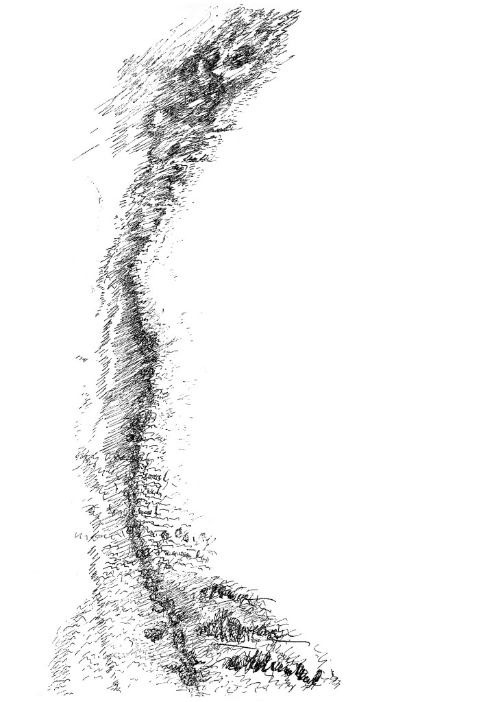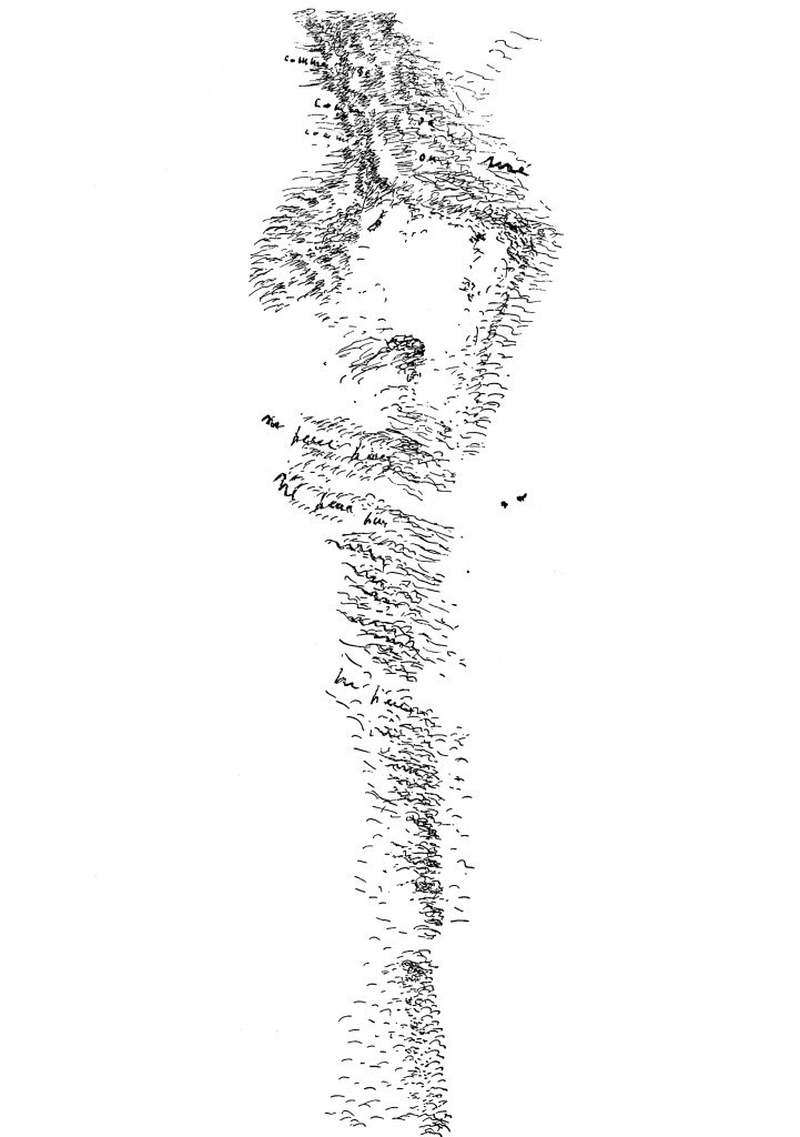 En son dessin-sismographe, le poète réalise la cartographie d’une sorte de Cordillère des Andes intérieures, probablement reliée aux vibrations de la colonne vertébrale et de la main tenant le crayon, arrimée à la feuille comme Ismaël à son cercueil.