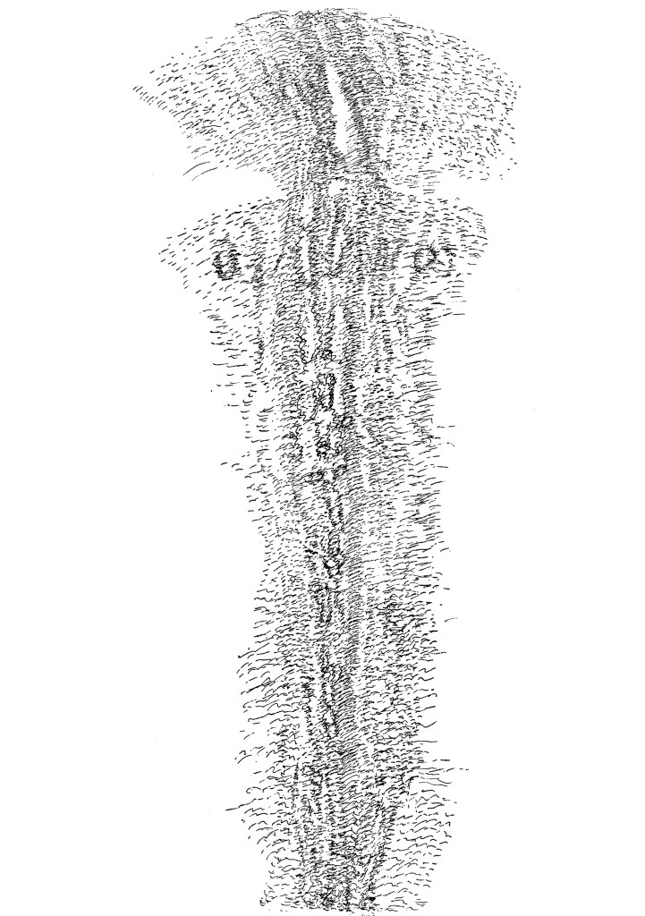 Dans le sillon ombilical apparaissent des visages monstrueux, tout un fourmillement d’êtres ubuesques, à la fois neufs et innommables.