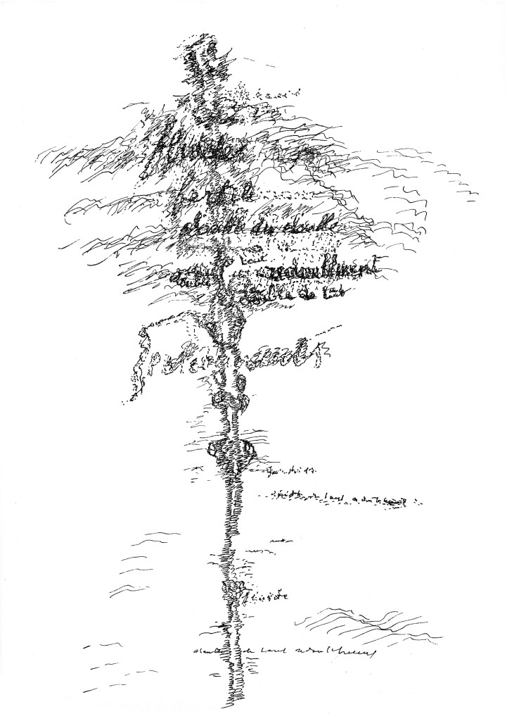 « Je crois donc montrer, écrit de façon fondamentale Henri Michaux, ayant plusieurs fois pendant des heures été en sa présence alors prodigieuse, je crois montrer l’arbre sans fin, l’arbre de vie qui est une source, qui est, piqueté d’images et de mots et proposant des énigmes, l’écoulement, qui, sans interruption, même d’une seule seconde, traverse l’homme du premier instant de sa vie au tout dernier, ruisseau ou sablier qui ne s’arrête qu’avec elle. »