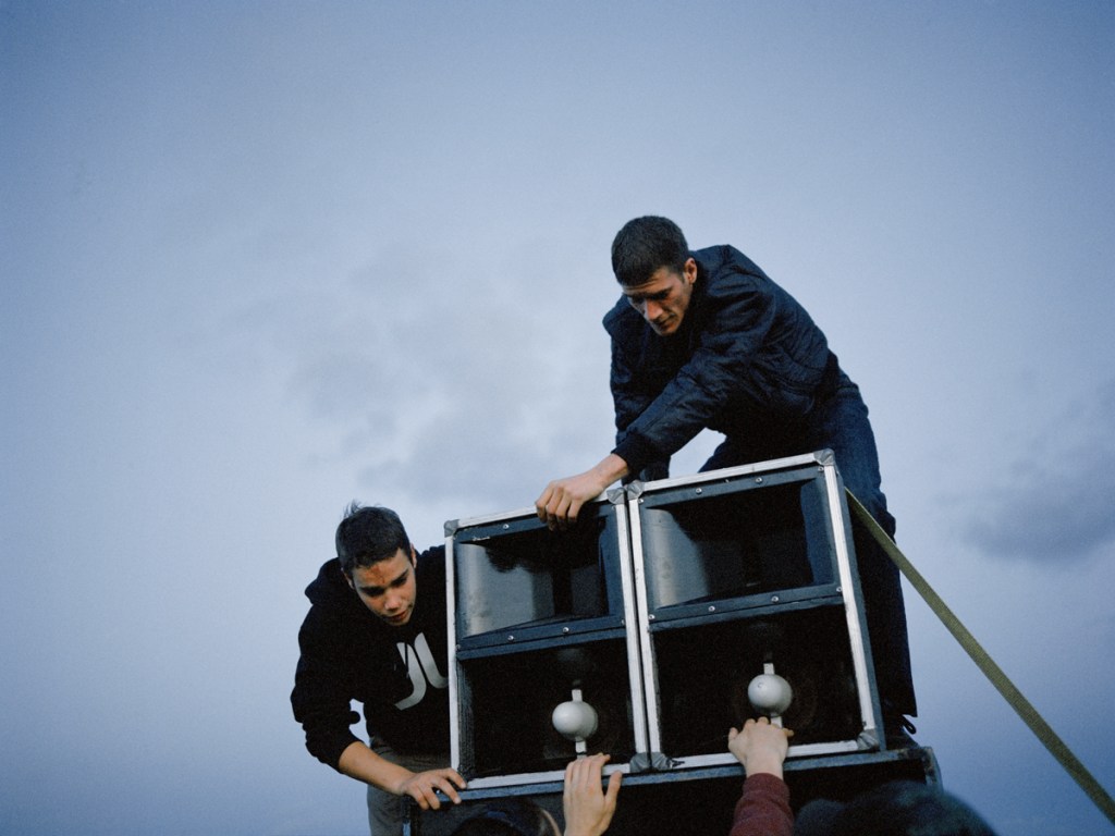 Julie Hascoët ne photographie pas directement le moment des corps dans la fête, mais ses préparatifs, ses alentours, la fatigue, l’attente, le sommeil, l’arrêt.
