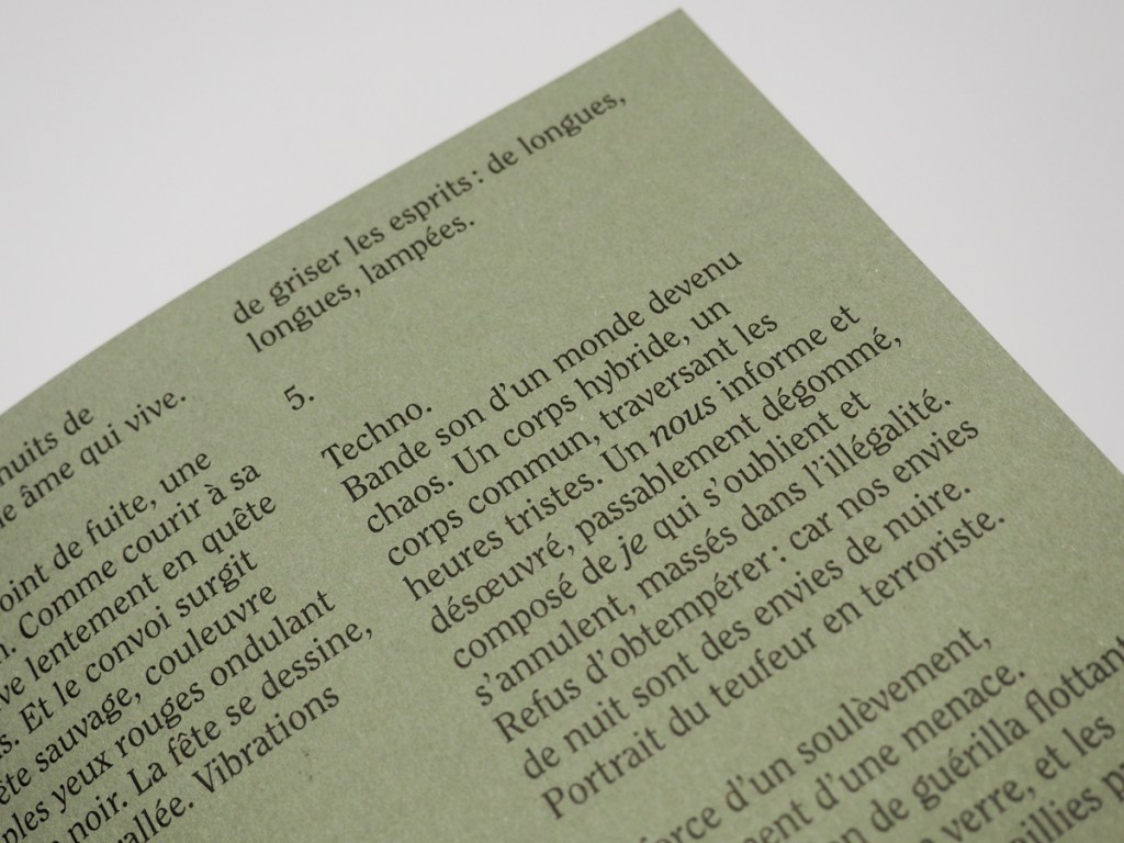 « On a, poursuit l’artiste dans son beau texte en sept points, éradiqué le jour, distendu à merci, la nuit s’est étirée vers le surlendemain – dans un gouffre de pupilles ; on a aboli le matin, suspendu le présent, on se tient hors du temps – une rêverie infinie, sans sommeil ni réveil. Il n’en reste plus rien. »