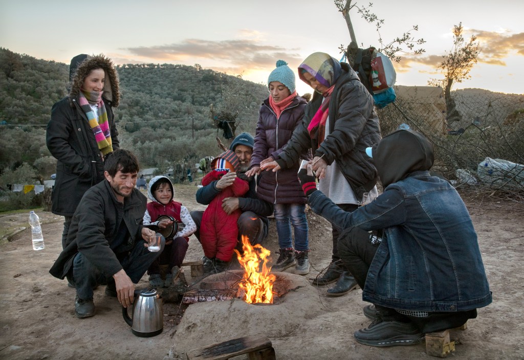 On a traversé l’eau, le désert, on se réunit autour d’un feu, il fait froid en janvier sur une île grecque.