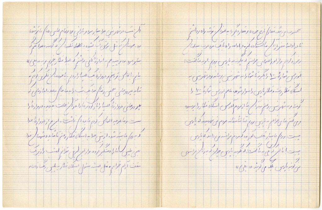 Extrait du récit écrit en dari par Mohammad Jawad Alizadeh en 2009-2010 à Paris © Mathieu Pernot / Éditions Textuel / Mucem