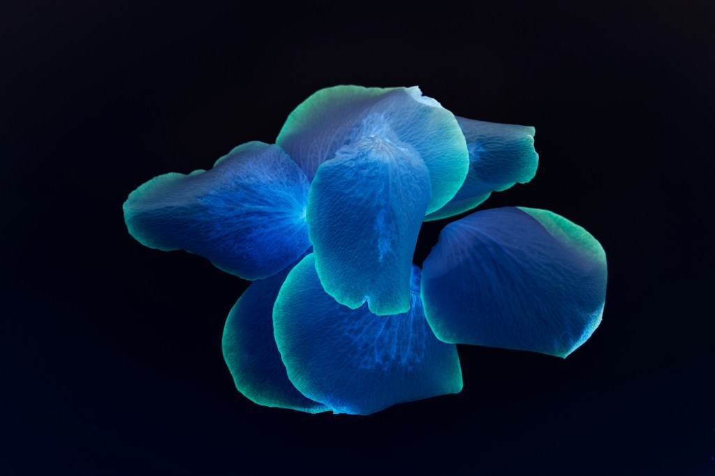 Enfin, la Polonaise Ewa Pszczulny observe en chorégraphe un ballet de fleurs et de plantes vertes et bleues photographiées sur fond noir.