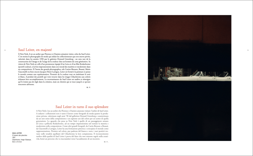 La première de couverture du livre, très belle, est un Cibachrome de Saul Leiter datant de 1950 appelé Sans titre (San Carlo, Restaurant au croisement entre 3rd Avenue et 10th Street).
