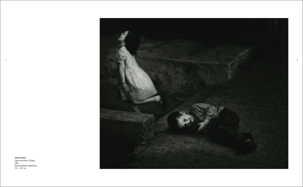 Maintenant place aux photographies, à la si belle Lella d’Edouard Boubat (un tirage qu’il garda toute sa vie près de lui), aux Funérailles japonaises de Henri Cartier-Bresson (1965), à la superbe danseuse – – quasi nue – de french cancan de François Kollar (1930), et tant d’autres merveilles (liste non exhaustive) : Les Adieux de Willy Ronis (1963), le drolatique Homme au tableau de Robert Doisneau (1950), le sublime Trois hommes s’étreignant de William Eugene Smith (1956), le Jeune Garçon de Paul Strand, photographie prise en France en 1951, et Bruce Davdison, Joel Meyerowitz (Jeune Danseuse, NYC, 1978), Luigi Ghirri toujours aussi magistral (Atelier Morandi, 1989), Chris Killip (voir actuellement sa rétrospective sur deux étages à la The Photographers’ Gallery de Londres).
