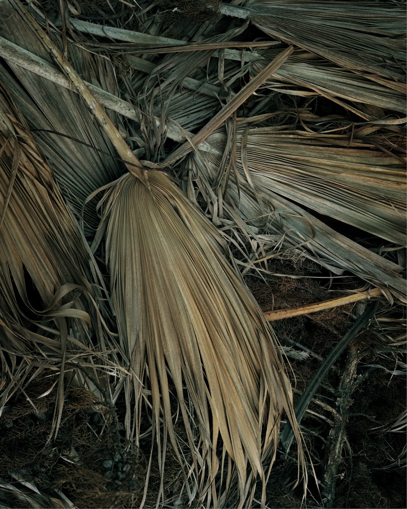 Les palmiers et les ifs forment les sentinelles végétales d’un royaume abîmé, morcelé, parsemé d’orthèses (voir le livre éponyme de Guillaume Bonnel publié en 2017 chez Arp2 Publishing) et de bâtiments sans qualité.