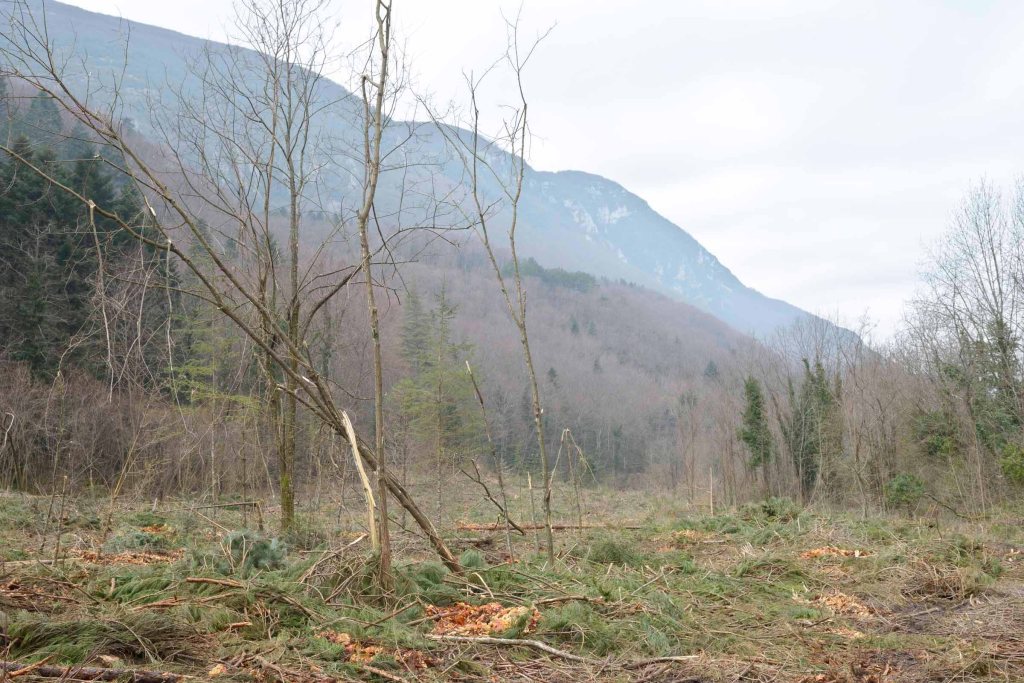 Des arbres ayant subi la loi des intempéries, des troncs bûcheronnés, le travail des hommes et des jours.