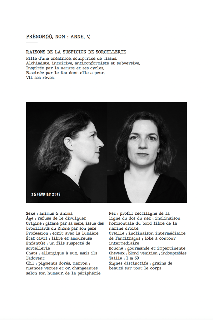 En photographiant en noir & blanc, à la façon du criminologue Alphonse Bertillon, une centaine de personnes, dont une grande majorité de femmes, qui auraient pu autrefois être accusées de « sorcellerie », la Lausannoise Anne Voeffray a imaginé un dispositif permettant de questionner, de façon glaçante, mais aussi ironique, voire drolatique, ce chef d’accusation facile permettant de jeter à la vindicte populaire les indésirables du moment.