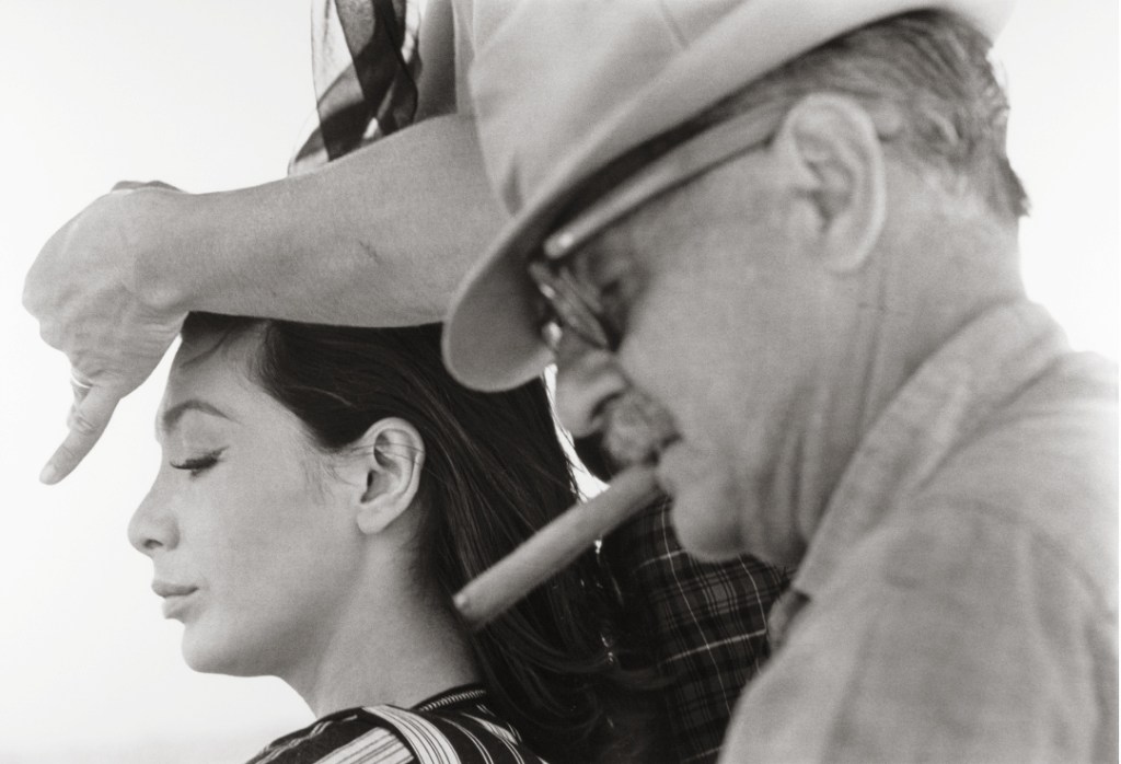 Main levée à quelques centimètres du front de l’actrice – nous sommes en Camargue en 1960 -, le réalisateur américain mesure peut-être la lumière.