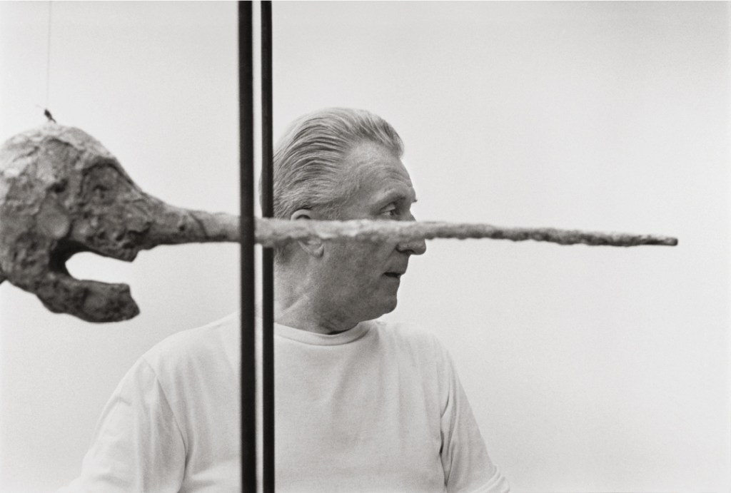Le sculpteur Etienne Martin est aussi chat que son grand matou (1961), l’écrivain et biologiste Jean Rostand fronce les sourcils (1963) devant des flacons contenant je ne sais quels élixirs, Jean Tinguely est l’un des rouages de sa dernière machine/sculpture (1965), Alexandre Calder a le front coupé par la faux d’une pièce métallique d’une de ses créations (1965).