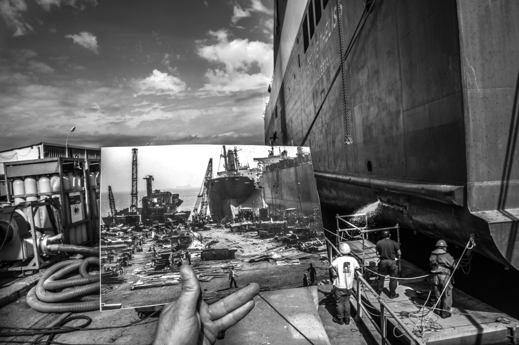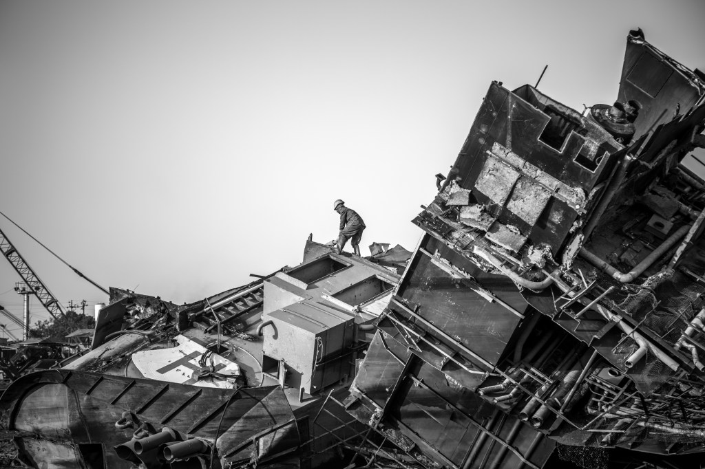 Nous sommes dans des mines de charbon, dans une fonderie d’acier, dans des chantiers de réparation, destruction et construction navales, dans une décharge publique de plastique, dans une mine de soufre, dans une mine d’argent et de zinc, avec des pêcheurs au calmar.