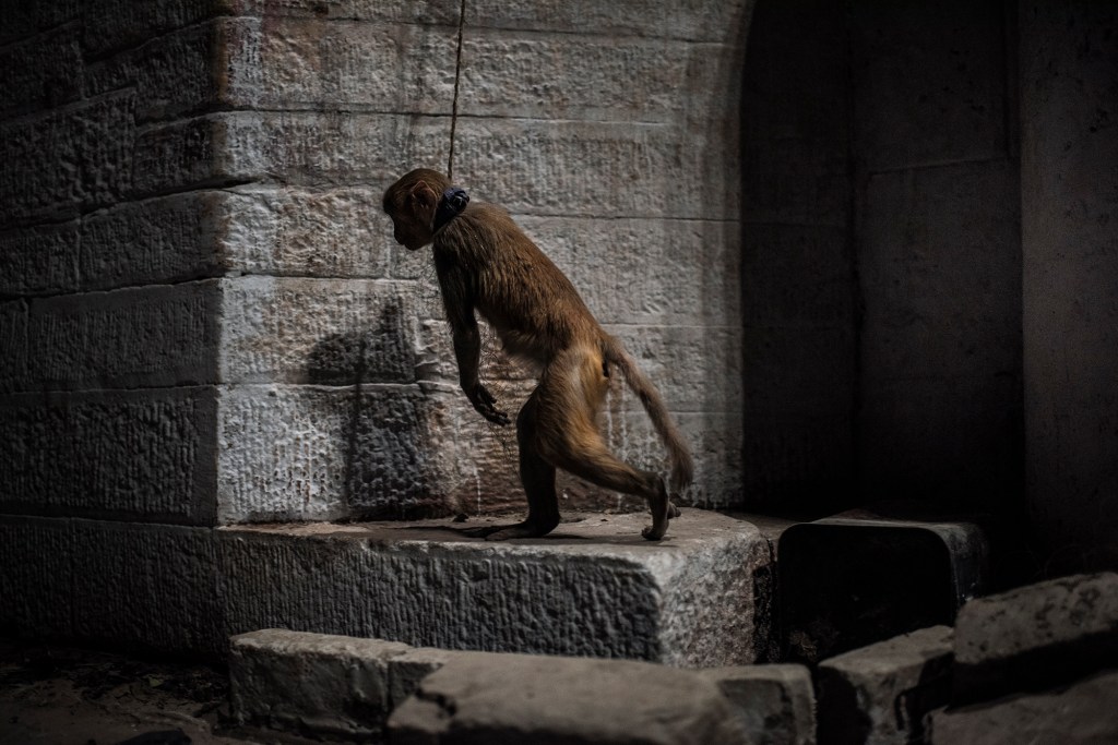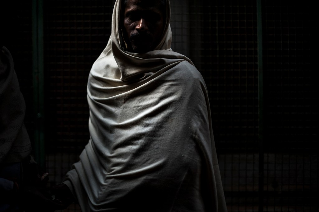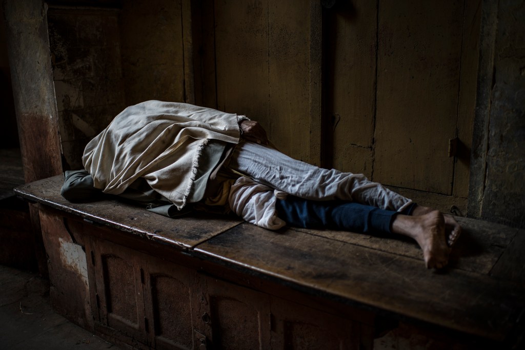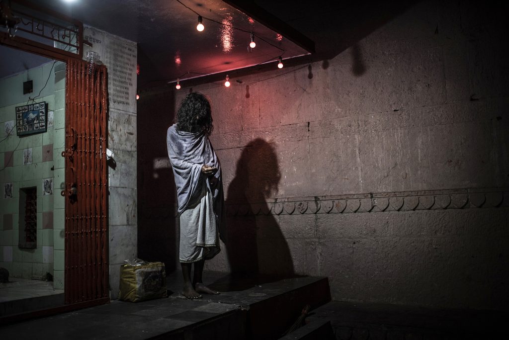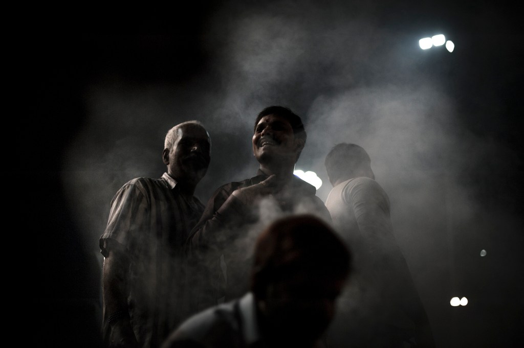 Le sacré est palpable, dans la dentelure d’un édifice aux multiples arches ou arcatures, comme dans la façon dont les rais de lumière pénètrent les ténèbres révélant çà et là un visage, une femme portant un sari, un enfant endormi à même le sol.