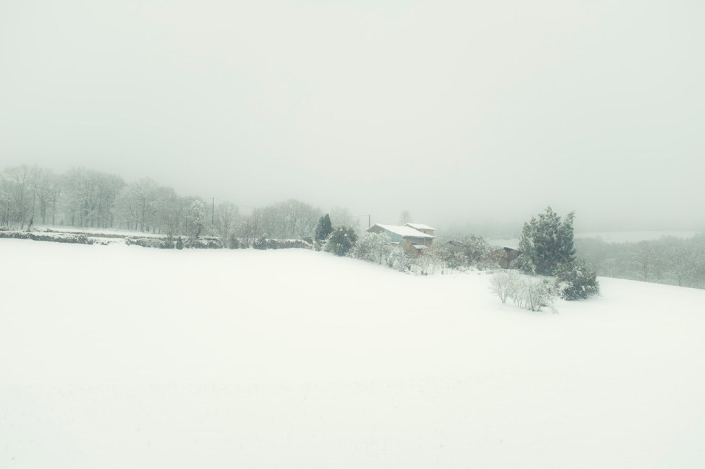 Dans le mandala du champ labouré recouvert de neige repose probablement le secret de l’existence du petit d’homme happé par la mort, devenu roche fendue, particule de brouillard ou végétal étique dans une lande fantasmatique.