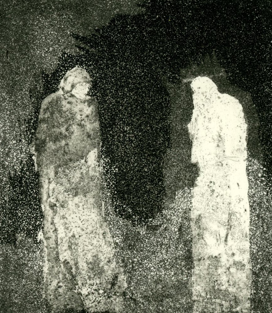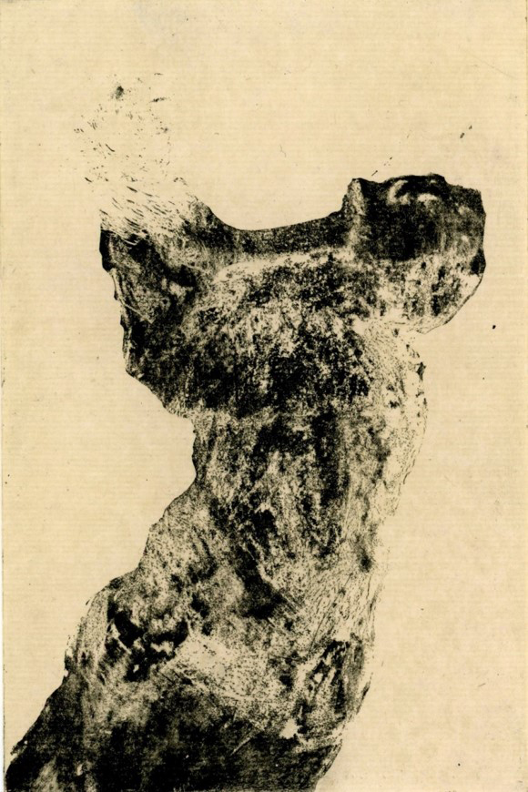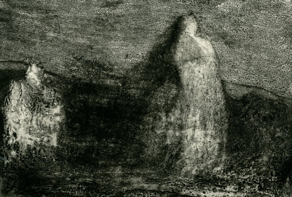 Précédé d’un beau texte de nature autobiographique de Bernard Chambaz, ces eaux-fortes, aquatintes et pointes sèches sont de l’ordre d’un paysage dantesque mental, non pas effrayant comme l’adjectif connoté négativement condamnerait malheureusement à le croire, mais d’un esprit happé par le noir et les silhouettes d’un peuple de lapidaires.
