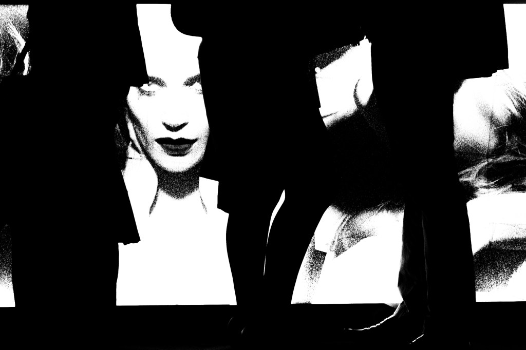 Il y a des trouées de lumière dans le noir, des amorces de fiction, des caddies sur un parking dans un supermarché désert, un homme assis sur le sol, la tête enroulée par un tissu lui donnant l’allure d’une momie urbaine.