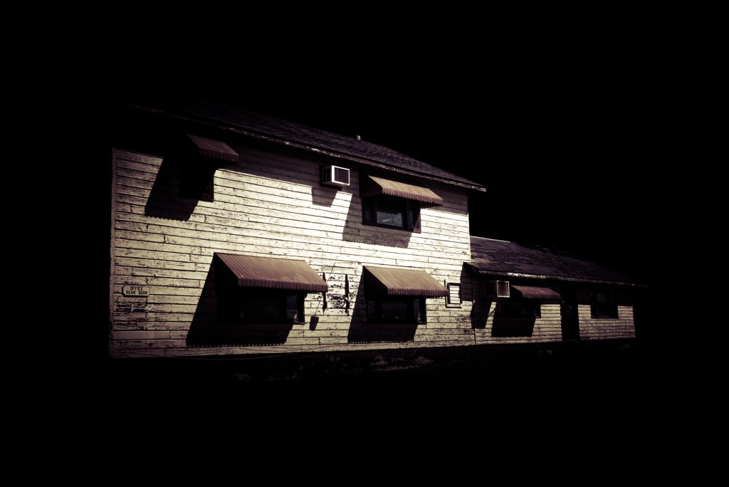 David Nissen est très sensible à la façon dont le territoire est rythmé par les bâtiments, et dont eux-mêmes paraissent perdus dans la nuit.