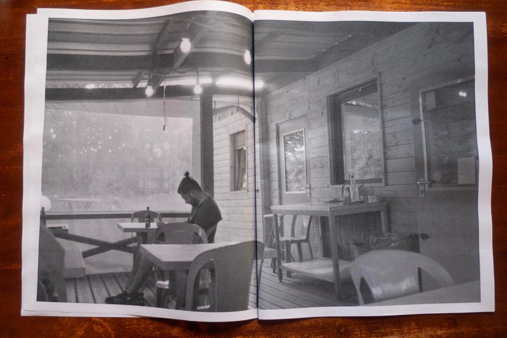 Associées en mosaïque- deux fois dix images par page -, les photographies induisent une approche visuelle rapide imposant une sorte de débordement du regard.