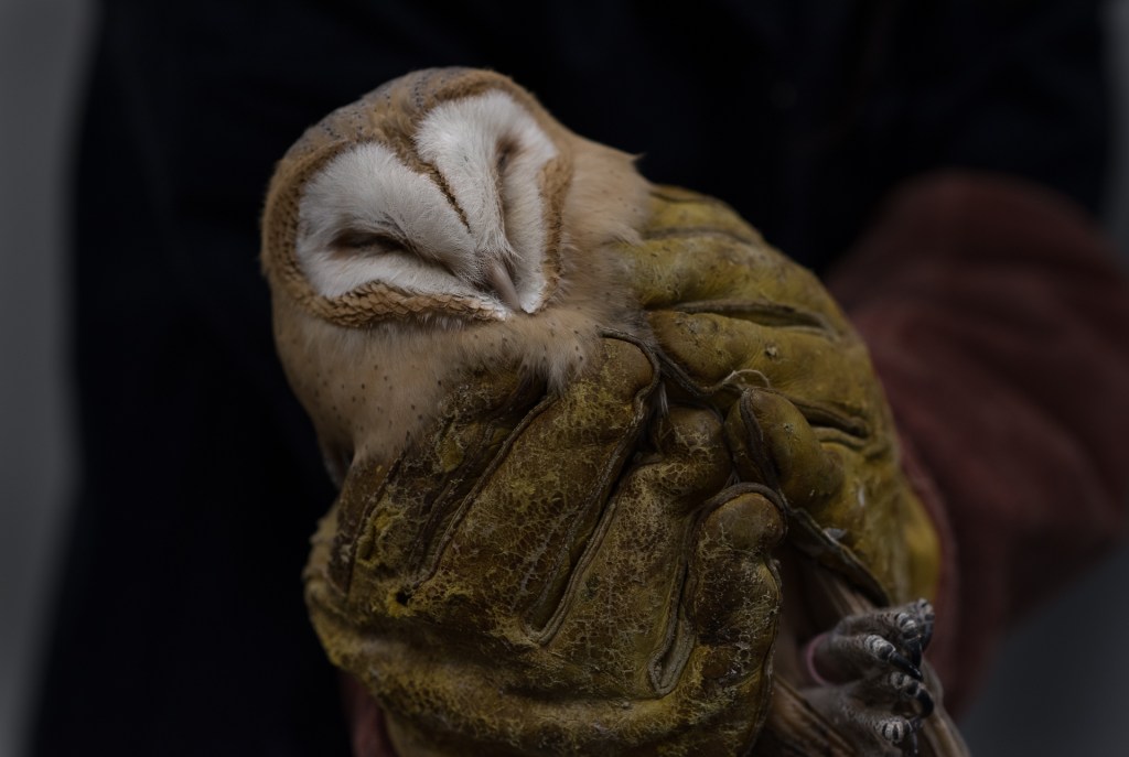De l’eau, des copeaux de bois, des cages, une effraie endormie.
