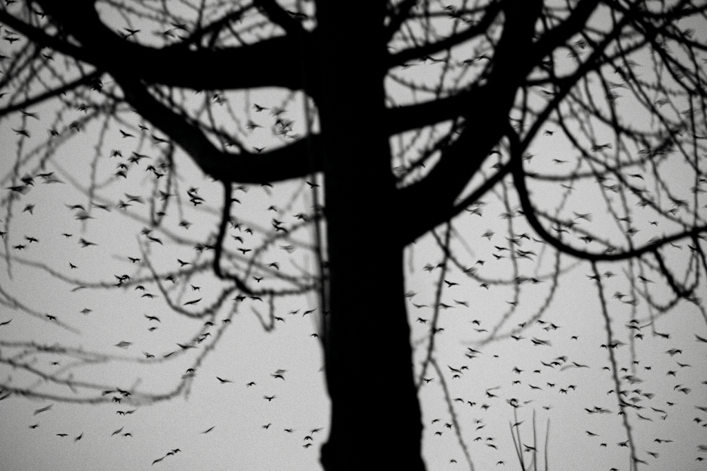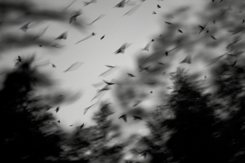 Ce grand rassemblement de corbeaux procède d’une cérémonie ancienne, secrète, menant à l’effarement de l’œil.
