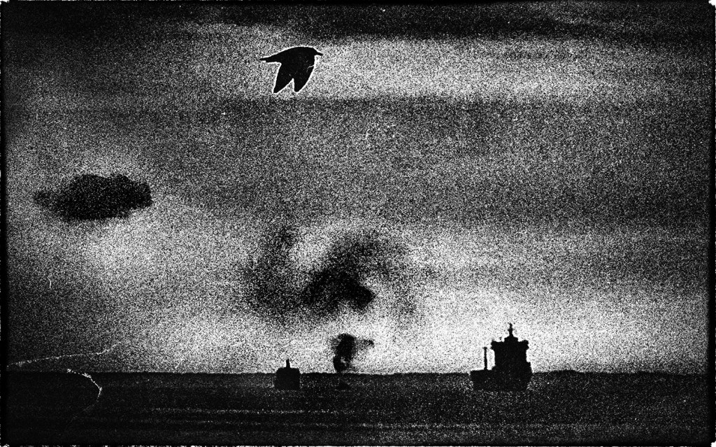 Certains perçoivent encore les anges entre les pluies d’atome méphitiques – chaque image est une attaque de burin, ou une épreuve de fixation allant vers la pulvérulence -, ce sont sûrement des chiens d’homme, fidèles et nobles, n’ayant pas perdu dans le laminoir social leur pouvoir d’omnivoyance natal.