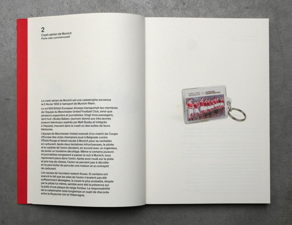 Publié de façon inédite par quatre éditeurs partageant probablement la même passion, GwinZegal (En-avant Guingamp), Images Vevey (FC Vevey), Poursuite (Paris Saint-Germain) et RVB Books (AC Arles-Avignon), cet ouvrage est constitué autour de la collection privée d’Olivier Cablat, composée d’objets marqués par des défaites ou des événements traumatiques du football.