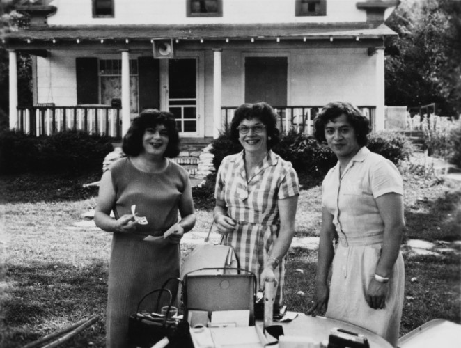 Edith Eden, Audrey, Edith et Irene dans le jardin, Chevalier d’Éon, Hunter, 1960-1963. Tirage gélatino-argentique, 8,8 × 11,2 cm. Art Gallery of Ontario. 2014/785