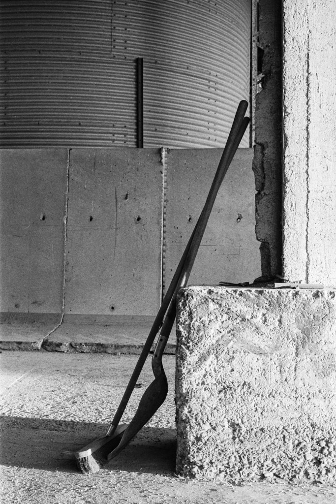 Le photographe nous offre un essai de métaphysique supérieure, dialogue d’un balai et d’une pelle dans une enceinte industrielle transformée en temple zen.