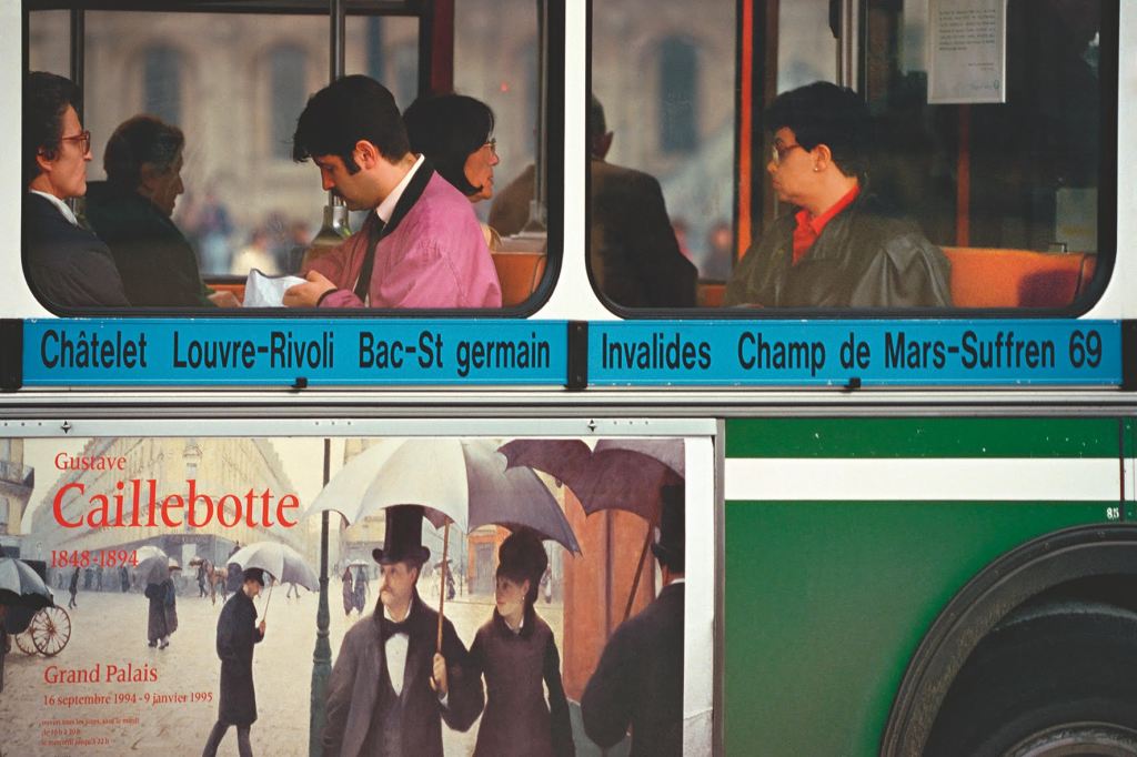 A partir d’une sensation de vide – prenons par exemple la toile de nudité grise d’un photographe nommé Atget -, l’artiste italien observe la façon dont les structures, les objets et les êtres se placent dans l’espace, une devanture de magasin rouge, une deux chevaux rose dans une rue en pente de Montmartre, des enseignes, une foule.