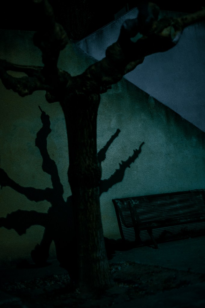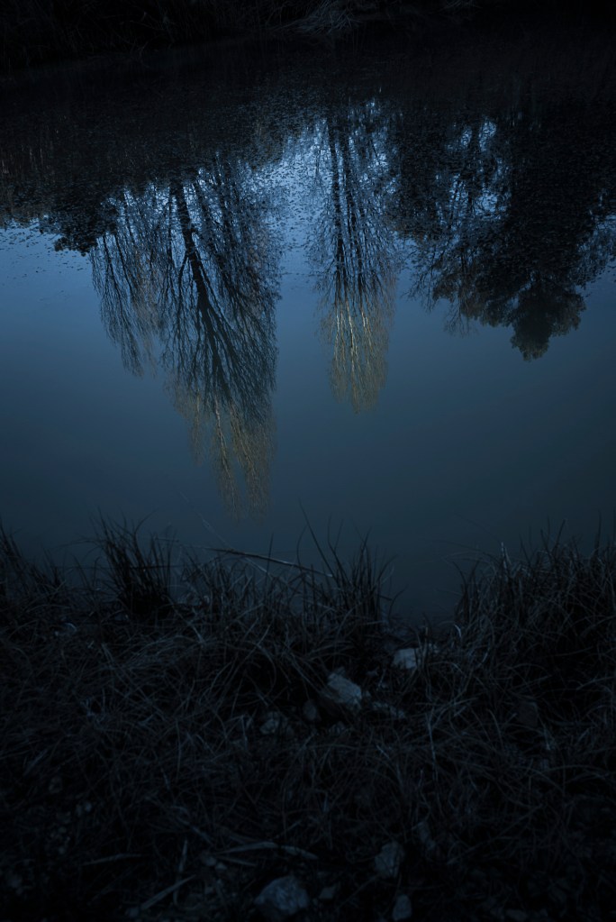 Le paysage se dissout, bleuit, verdit, s’assombrit.
