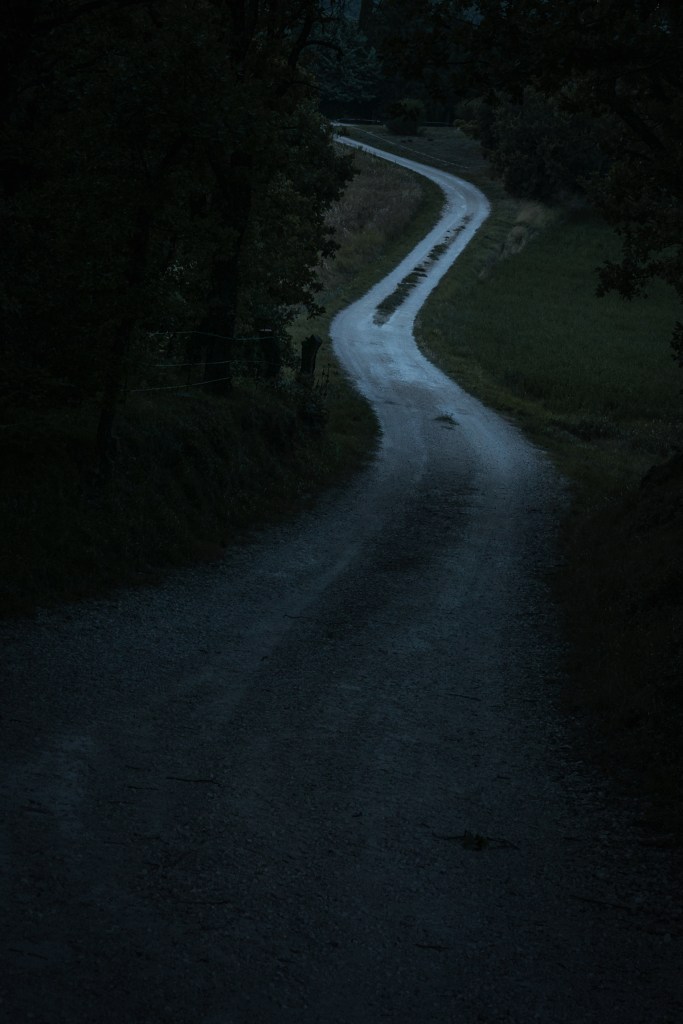 Une route sinueuse, des flaques de significations obscures, des rochers qui parlent une langue inaudible aux humains.