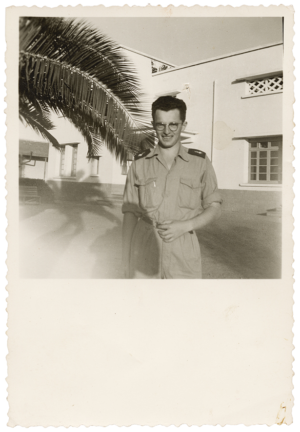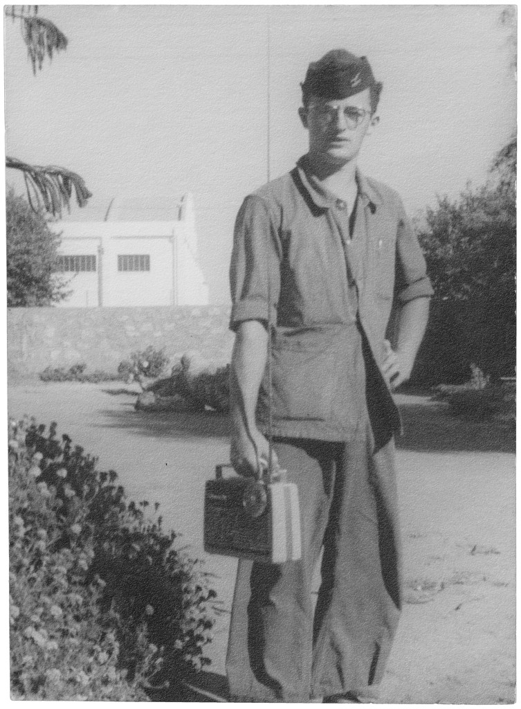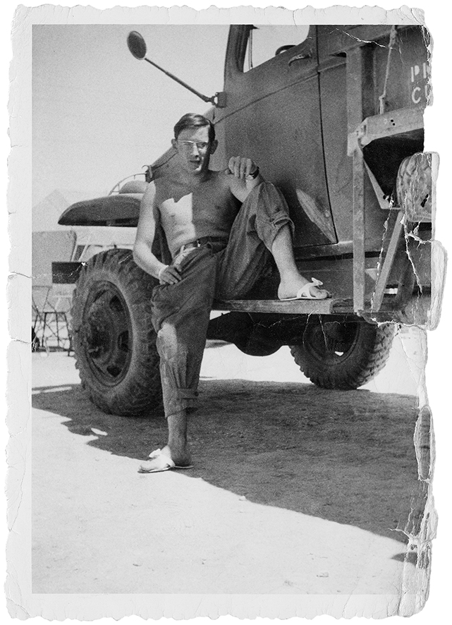 Et puis il y a le père posant, torse nu, en tongs, assis sur le marchepied d’un camion militaire, en Algérie, où il arriva en avril 1959.