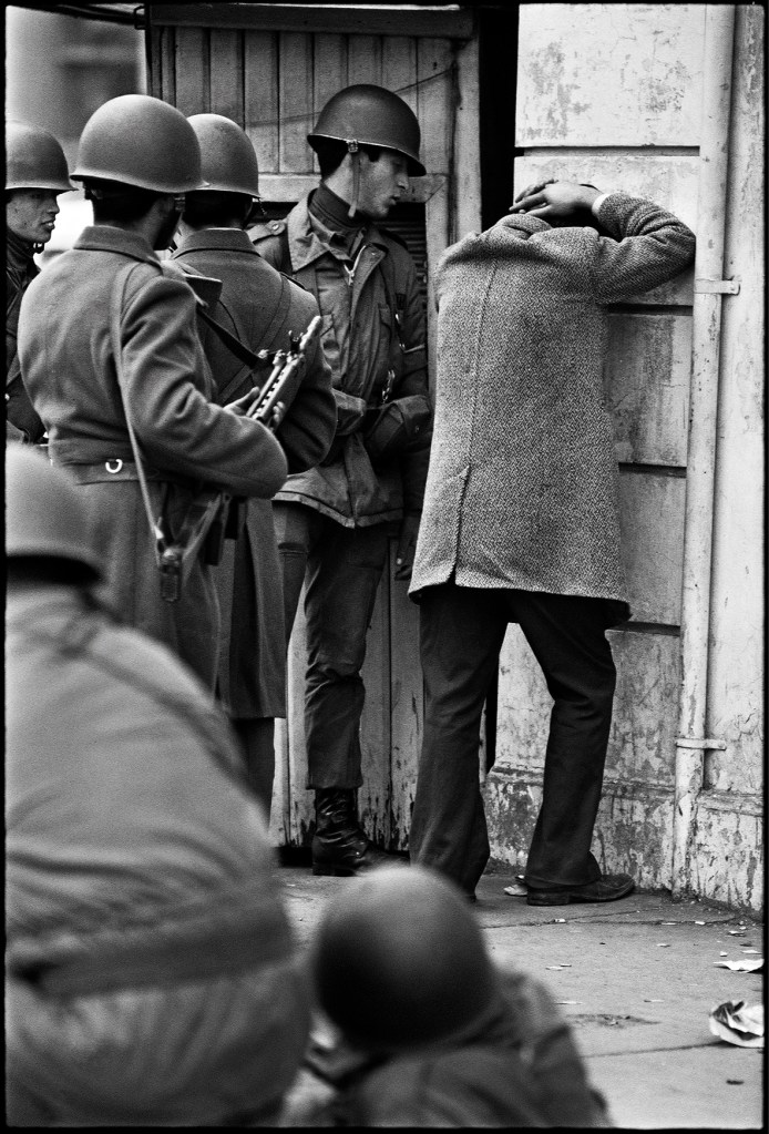 Les militaires se livrent à de vastes opérations de répression, notamment l’enfermement de centaines d’opposants dans les stades – les autorités militaires veulent montrer aux journalistes étrangers qu’ils traitent bien leurs ennemis politiques -, que photographie le jeune reporter de vingt-six ans, récompensé bientôt par le prix Robert Capa.