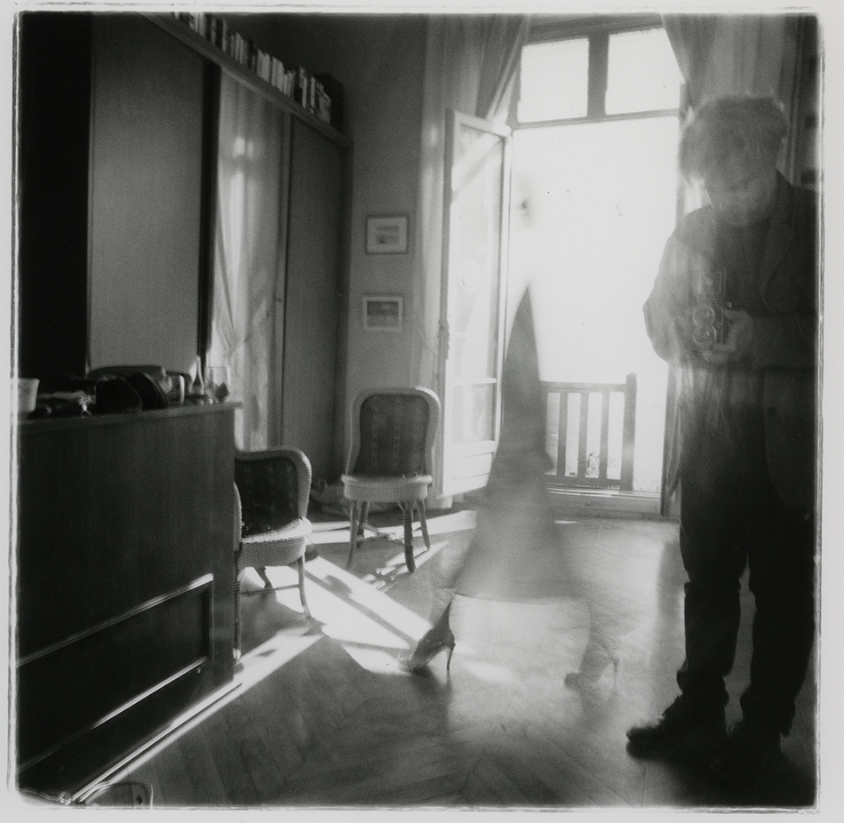 Une femme paraît, puis disparaît, puis naît de nouveau à l’instant où le photographe, la tête penchée sur l’écran de visée de son Rolleiflex, lui fait la révérence.