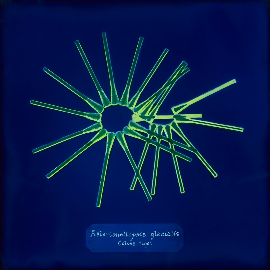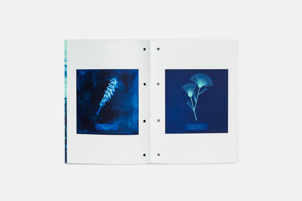 Les Particules est un livre hanté, aux « images spectrales » (Michel Poivert), faisant songer aux cyanotypes de la botaniste britannique Anna Atkins – des herbiers parus au mitan du XIXe siècle.