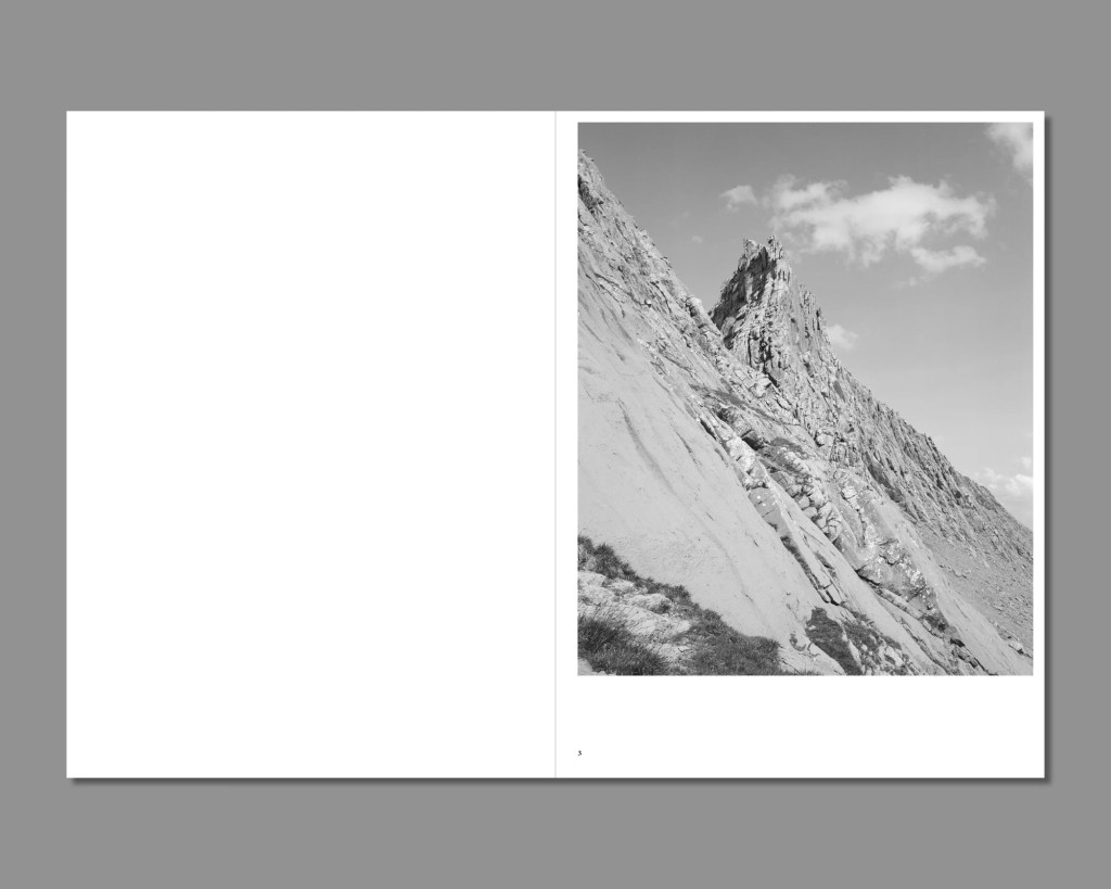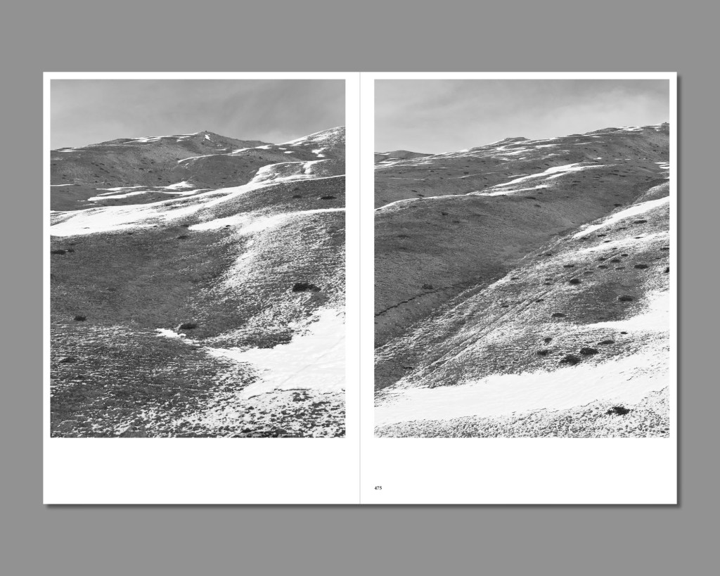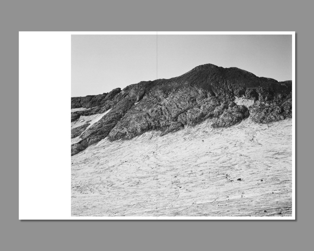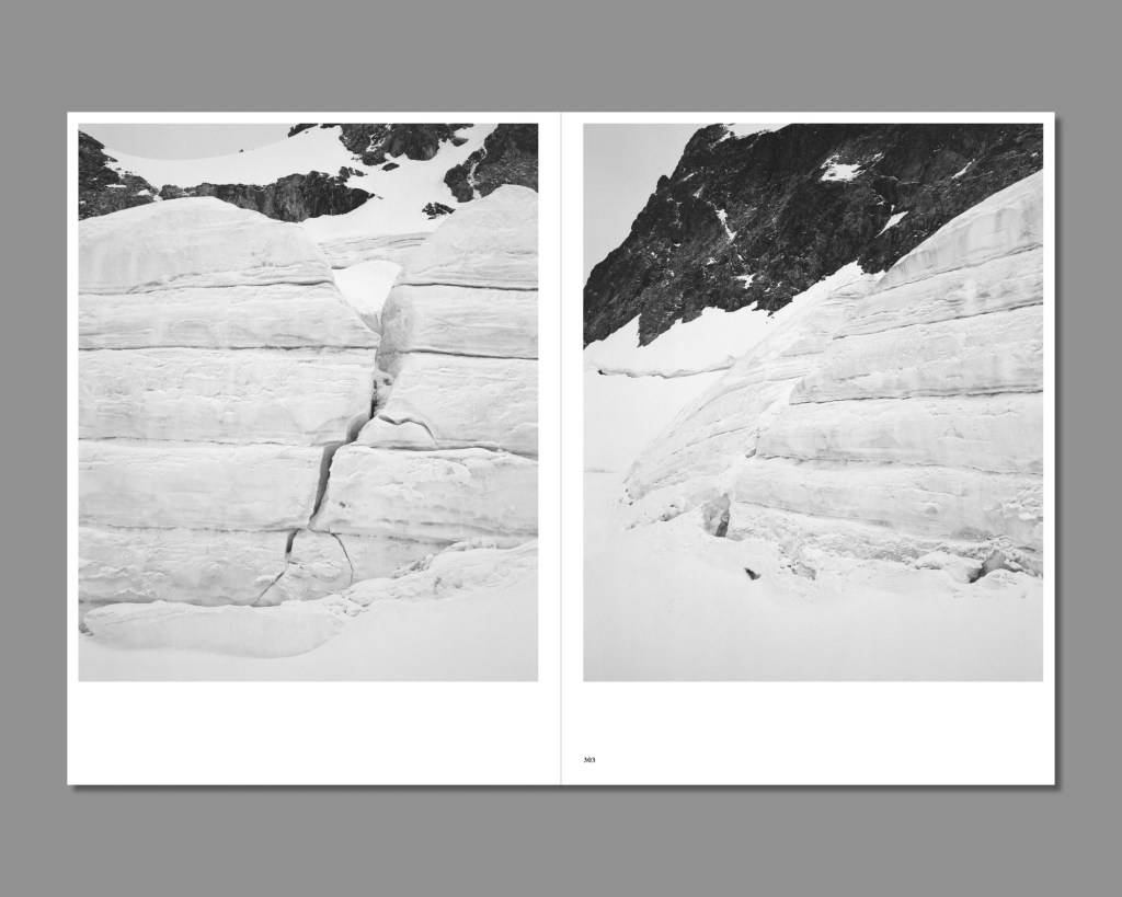 Il est, cristal de neige et surface erratique, dans Nival, qu’éditent les éditions Rue du Bouquet avec une belle radicalité janséniste : un corpus en nuance de gris de plusieurs centaines d’images, imprimées sur papier fin, de ses équipées en montagne, sans légende.