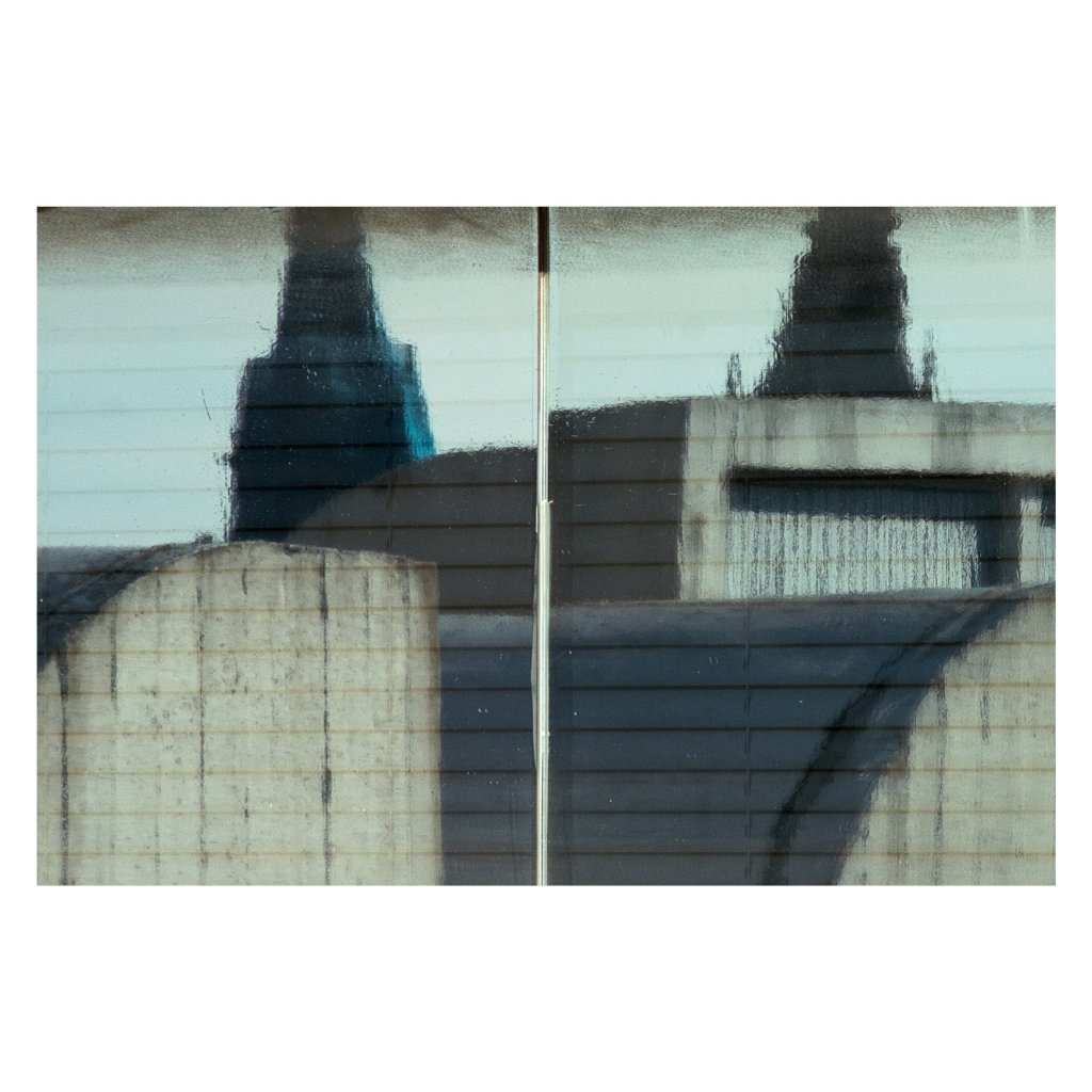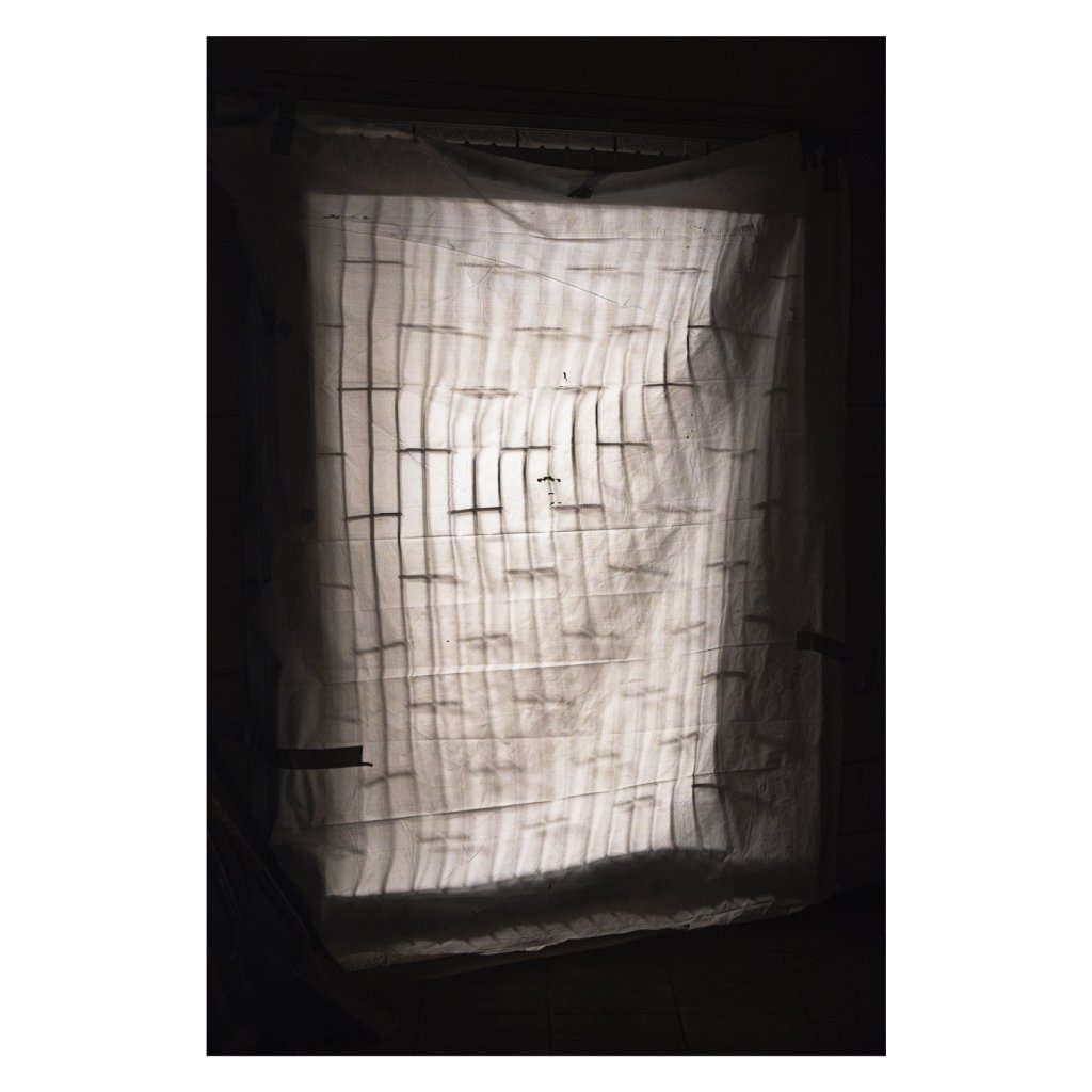 On voit des éléments de construction, des chantiers en cours, du fer et du béton, mais aussi des bâches en plastique, des lampes de bureau, des briques, des édifices floutés.
