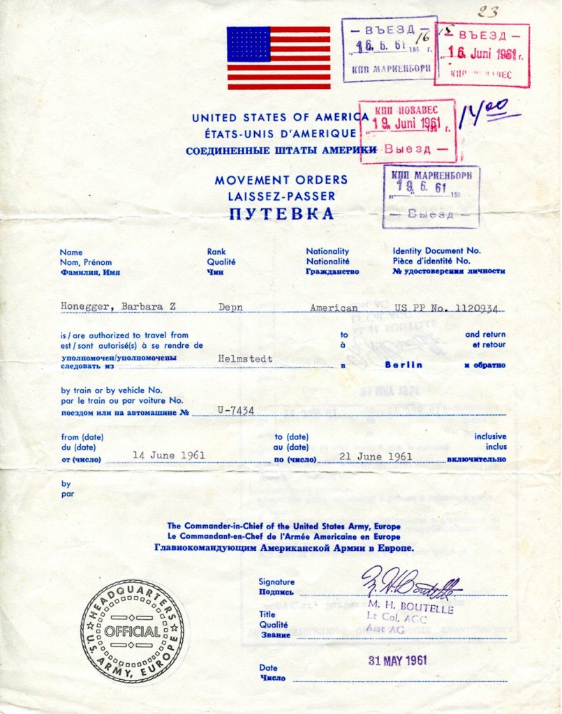 Un laisser-passer fourni par les Etats-Unis d’Amérique (31 mai 1961).