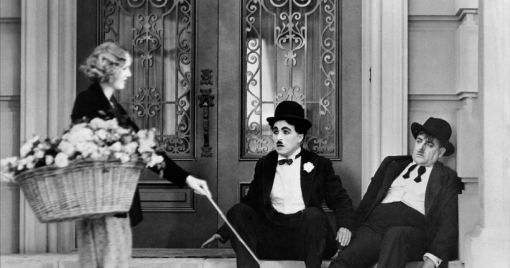 La scène d’ouverture des Lumières de la ville est extraordinaire : « Le film débute lors de l’inauguration officielle de la statue d’une place publique. Au lever du drap, la surprise est générale : dans les bras de la nation tout juste dévoilée trône un vagabond, Charlot. Le scandale est immédiat ; mais loin de disparaître de la vue de son public, Charlot persiste, s’impose, ne quitte pas le devant de la scène, filmée dans un champ-contrechamp absolument frontal : il est impossible de faire abstraction de sa présence. »