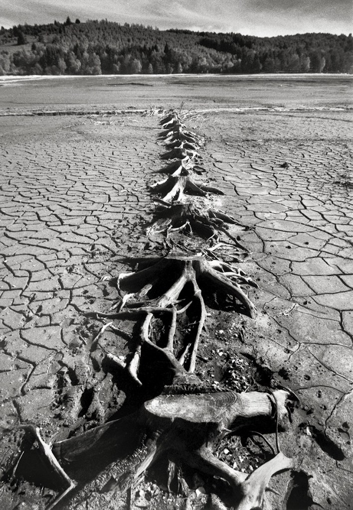 L’espace regarde le photographe, encore plus qu’il ne le contemple peut-être : l’étrange, l’étranger, c’est lui, qui révèle l’intimité des structures du vivant.