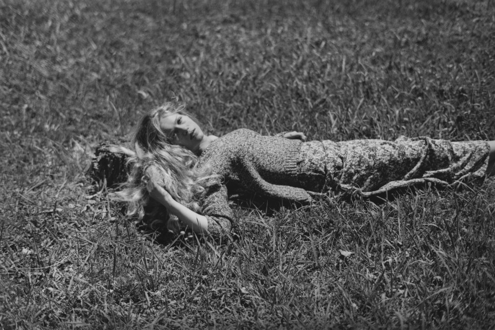 Une femme s’allonge sur l’herbe folle, c’est probablement une nymphe.