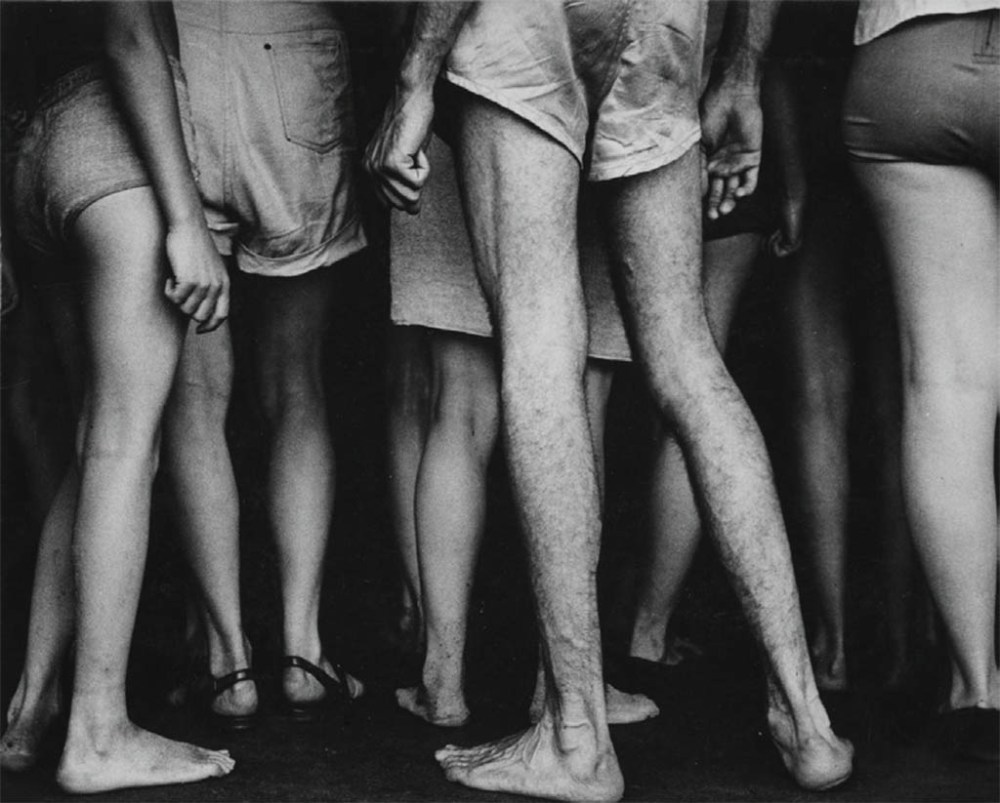 Comportant quatre dépliants permettant de contempler et méditer dans leur ampleur des œuvres iconiques de l’artiste (les jambes de plagistes, série Chicago Beach ; la composition graphique de la villa Katsura à Kyoto), l’ouvrage Des lignes et des corps, se concentrant sur les premières décennies de son œuvre, expose une double influence, celle de Aaron Siskind et des recherches formelles de ce photographe proche de la peinture expressionniste, ainsi que celle de Harry Callahan, plus centrée sur l’humain mais dans une dimension d’abstraction et de décontextualisation.