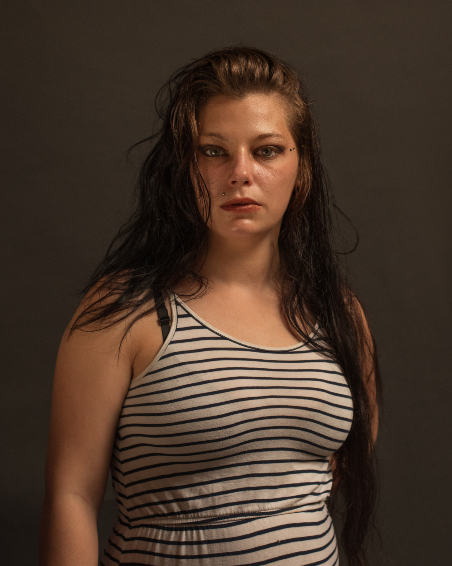 Photographiées sur fond brun, donnant la sensation de surgir d’un abyme, ces femmes écartées par la société sont d’une présence intense, l’attitude d’introspection de chacune relevant d’un secret incommunicable.