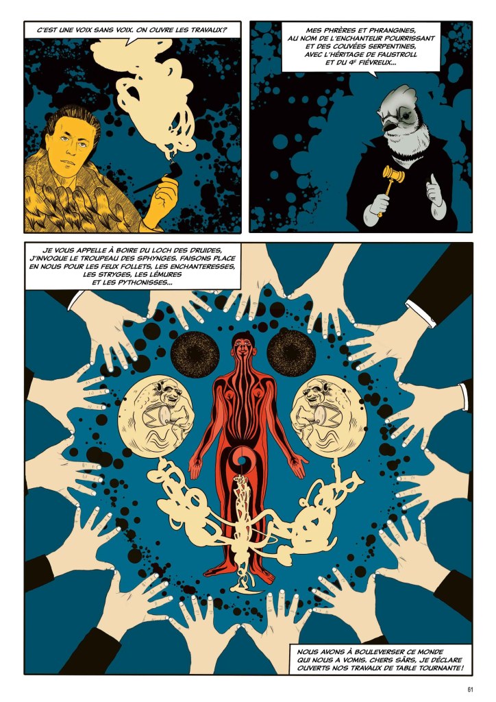 Le rayon invisible opère, la révolution surréaliste peut continuer, d’abord par le retour d’une petite communauté de défunts géniaux vivant dans un phalanstère sis dans les royaumes souterrains.