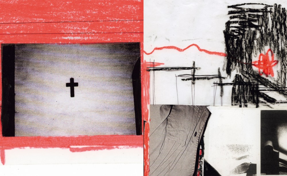 Une silhouette apparaît, un profil, une absence, et des croix comme chez Antoni Tapies.