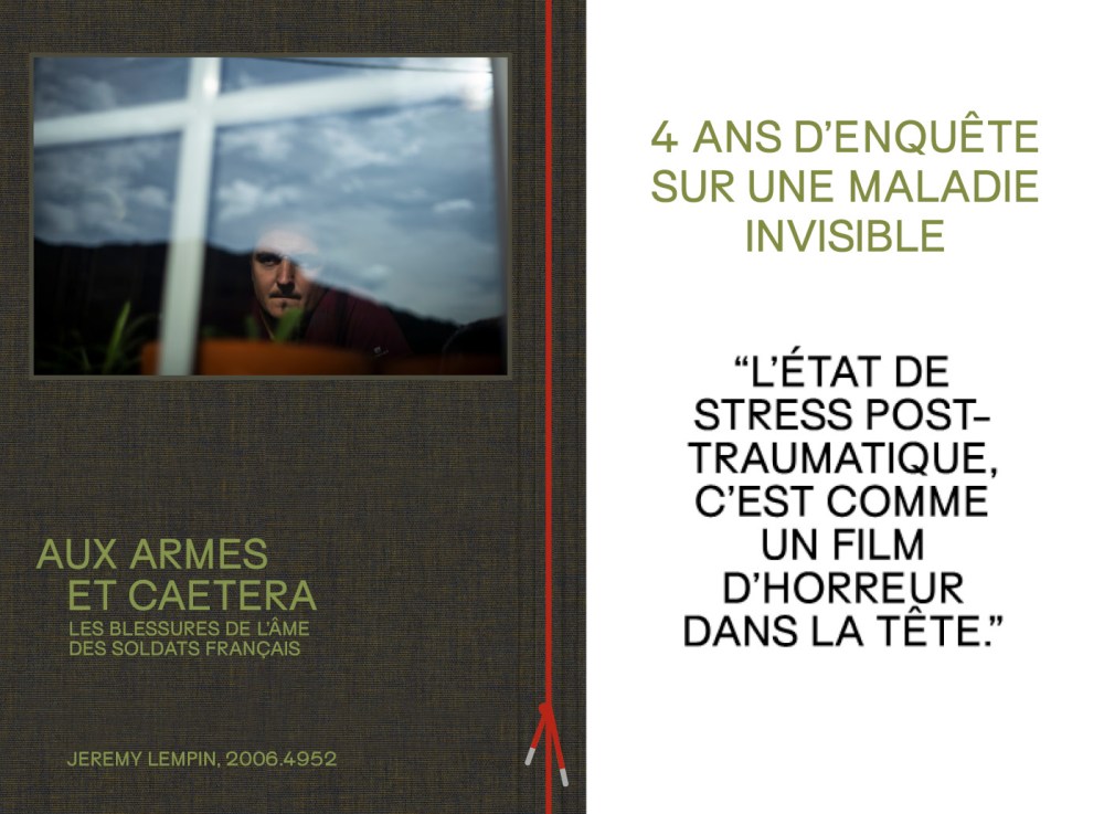 Dans un livre d’alerte, issus d’entretiens avec des hommes et femmes souffrant de l’Etat de Stress Post-Traumatique (ESPT), Aux armes et caetera, Jérémy Lempin, qui fut photographe au sein de l’armée de 2006 à 2016, évoque avec beaucoup de force et de sensibilité les blessures psychiques des soldats ayant vécu des traumatismes.